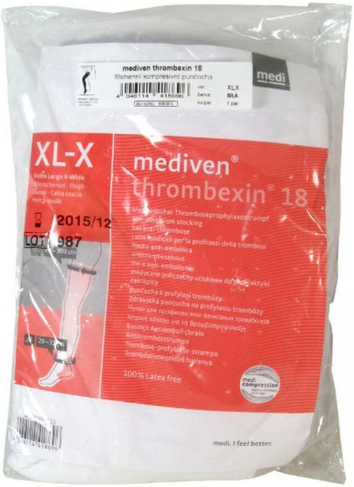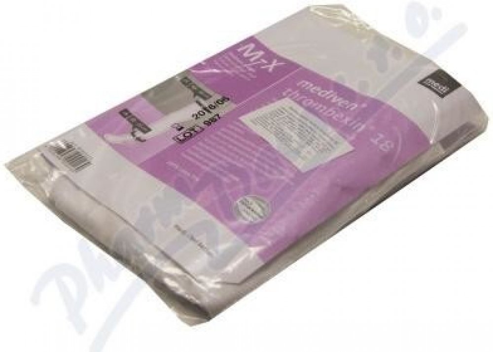 Thrombexin 18 je punčocha pro profylaxi trombózy s medicínsky správnou kompresí. Cílem komprese je vytvořit dostatečný tlak na stěnu povrchových a hlubokých žil končetin, aby nedocházelo ke stagnaci krve a usměrnil se tok krve směrem k srdci. Oproti elastickým obinadlům je tento tlak stálý a není závislý na správném nebo špatném vázání. K dostání v prodejnách zdravotnických potřeb a...