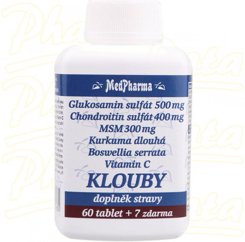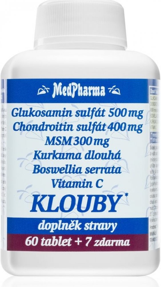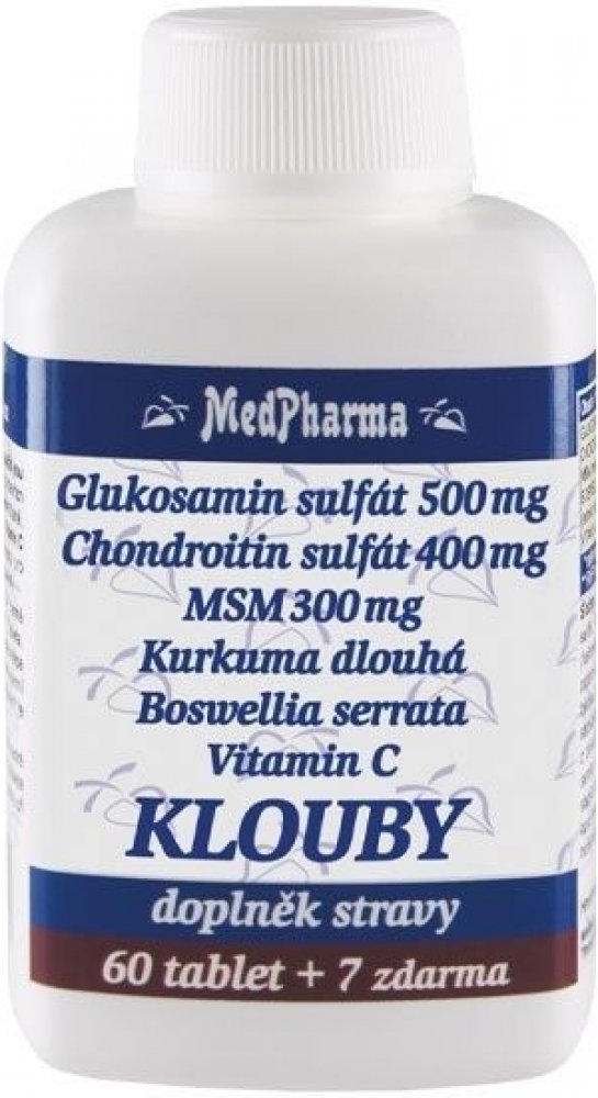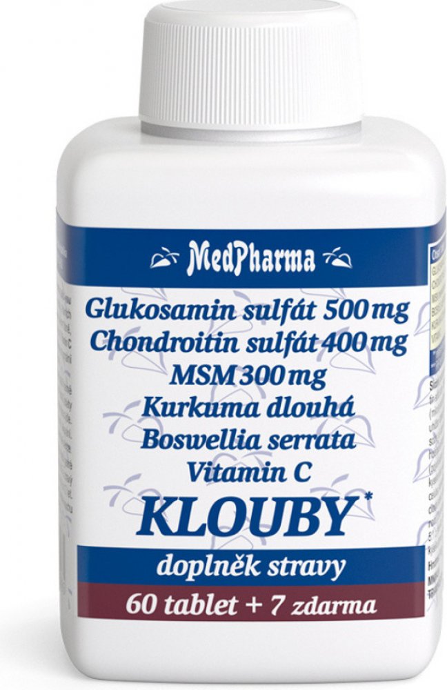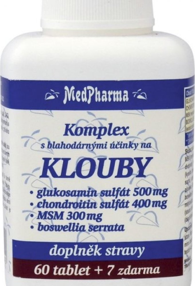 MedPharma 67 tbl tablety klouby, kosti, svaly unisex 500 g MedPharma pro dospělé perorální od 12 let bez příchutě Česká republika chondroitin kosti a klouby 22 1200.0 mg Kdykoliv 3× denně 1 tableta Suché místo + pokojová teplota, Chránit před světlem/sluncem, Mimo dos