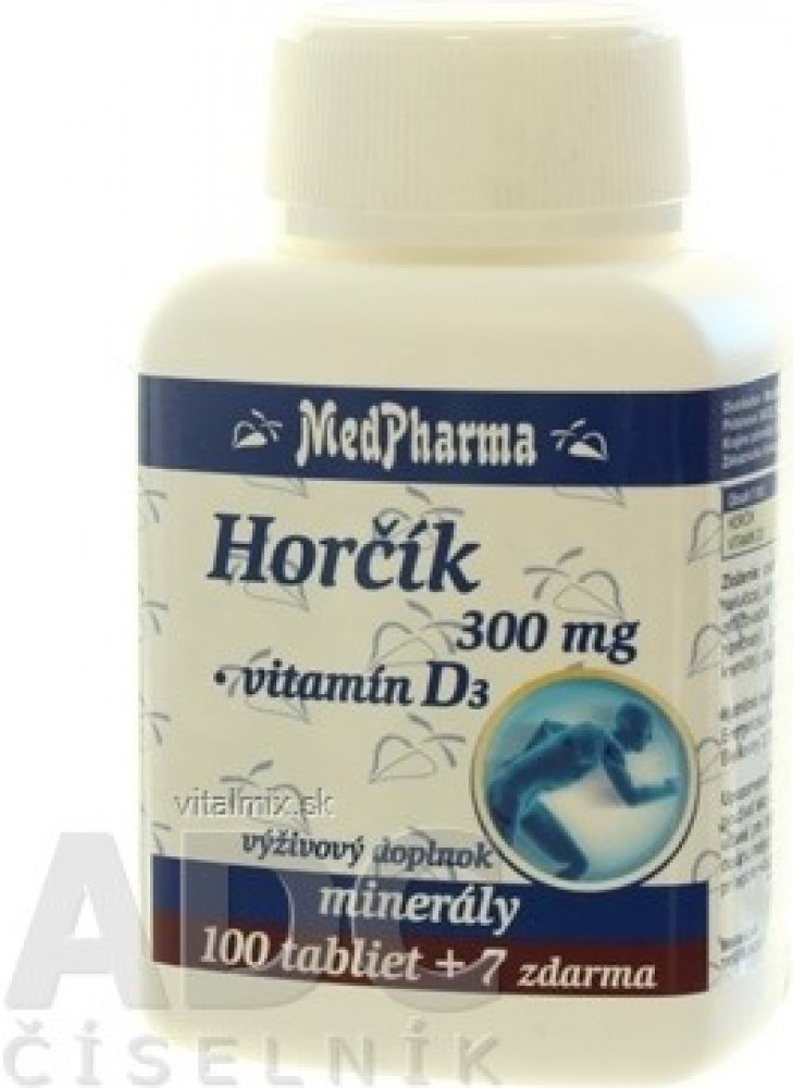 MedPharma 107 tbl tablety 50 ml klouby, kosti, svaly unisex 0 g MedPharma pro všechny perorální od 3 let bez příchutě USA hořčík kosti a klouby 107 300.0 mg Kdykoliv 1 za den Suché místo + pokojová teplota s vitamínem D