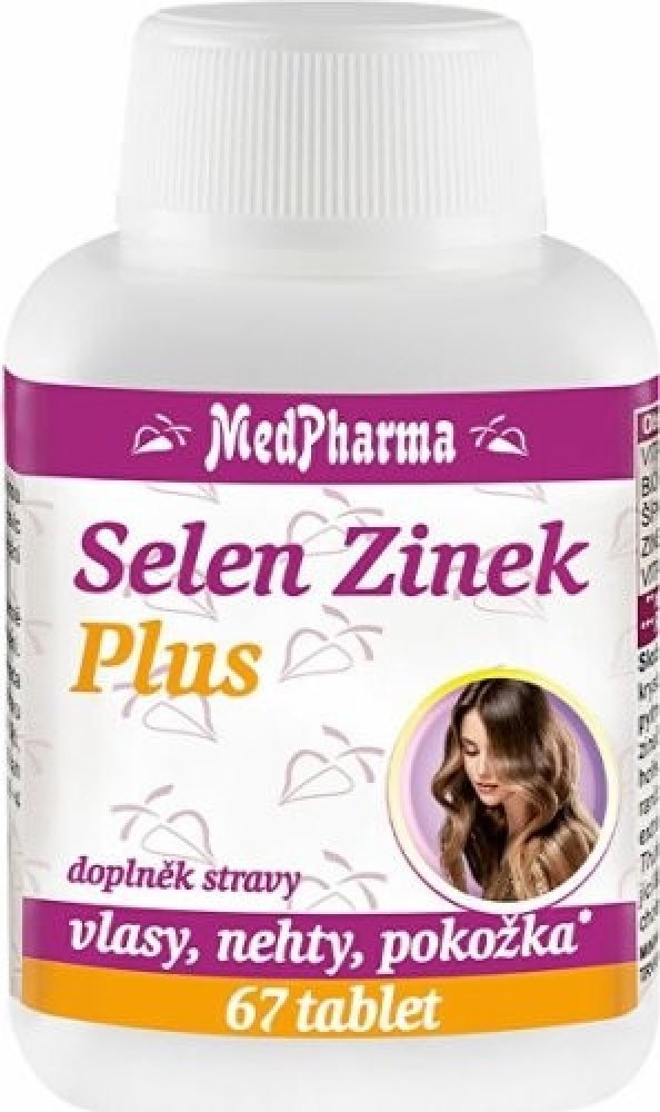 Medpharma 67 tbl tablety vlasy, nehty, pleť unisex MedPharma pro dospělé perorální od 15 let bez příchutě selen vlasy, kůže a nehty 67 Kdykoliv 1 za den Suché místo + pokojová teplota, Chránit před světlem/sluncem s vitamínem C