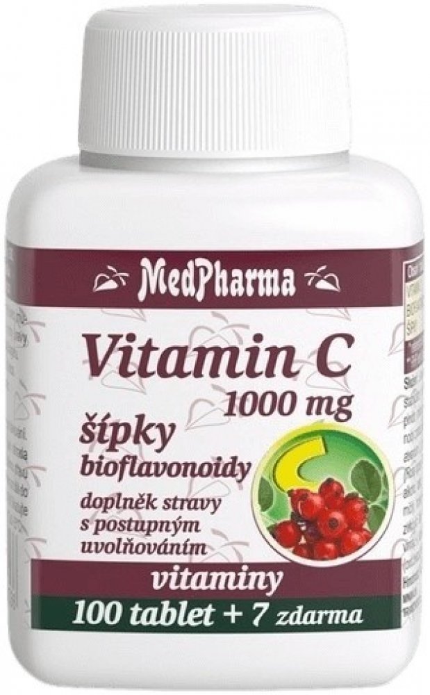 MedPharma 107 tbl tablety 50 ml imunita unisex 114 g MedPharma pro dospělé perorální od 12 let bez příchutě vitamín C imunita a obecné zdraví s postupným uvolňováním 107 1000.0 mg Kdykoliv 1 za den Pokojová teplota (do 25°C) se šípkem