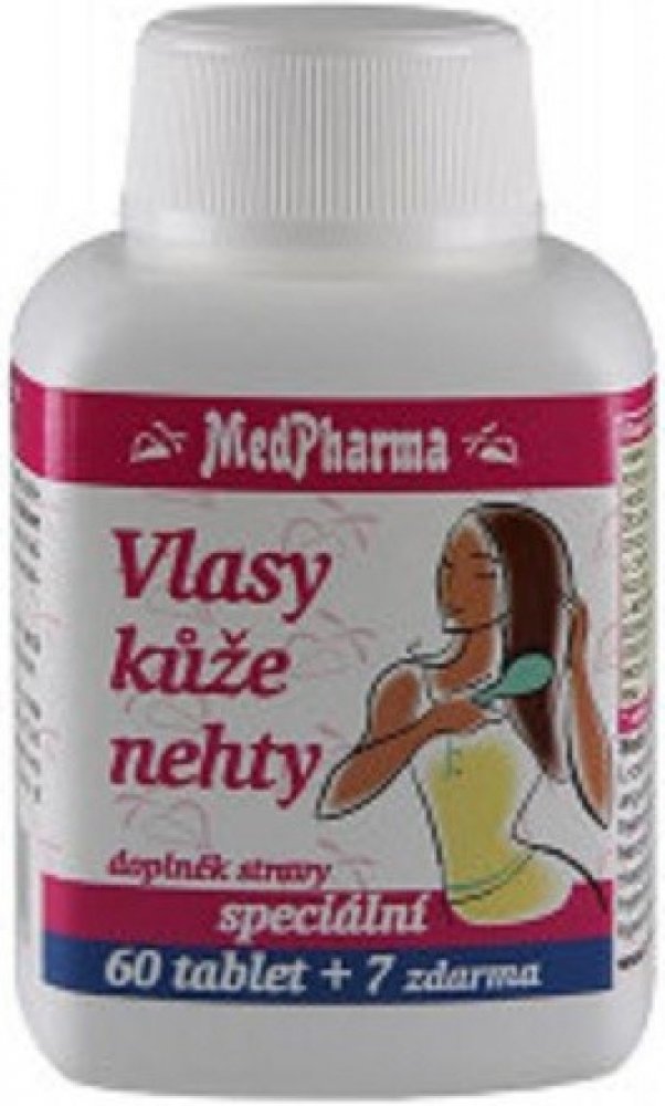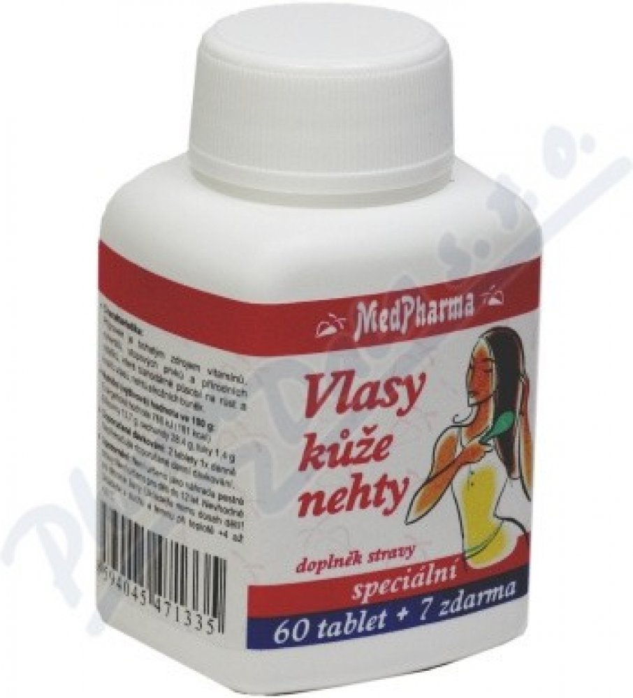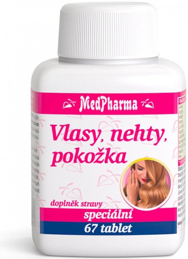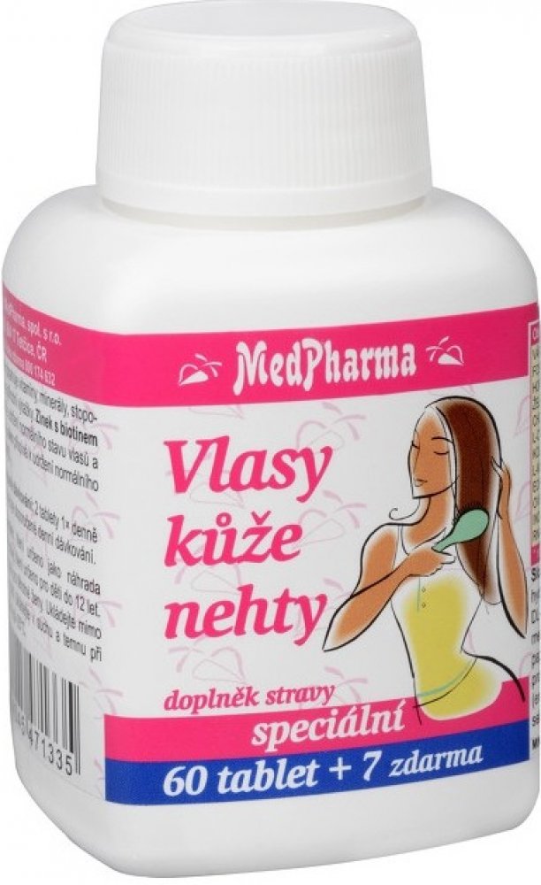 MedPharma 67 tbl tablety 50 ml vlasy, nehty, pleť unisex 100 g MedPharma pro dospělé perorální od 12 let bez příchutě Česká republika zinek vlasy, kůže a nehty 33 10.0 mg Kdykoliv 2 tablety 1x denně. Suché místo + pokojová teplota, Chránit před světlem/sluncem