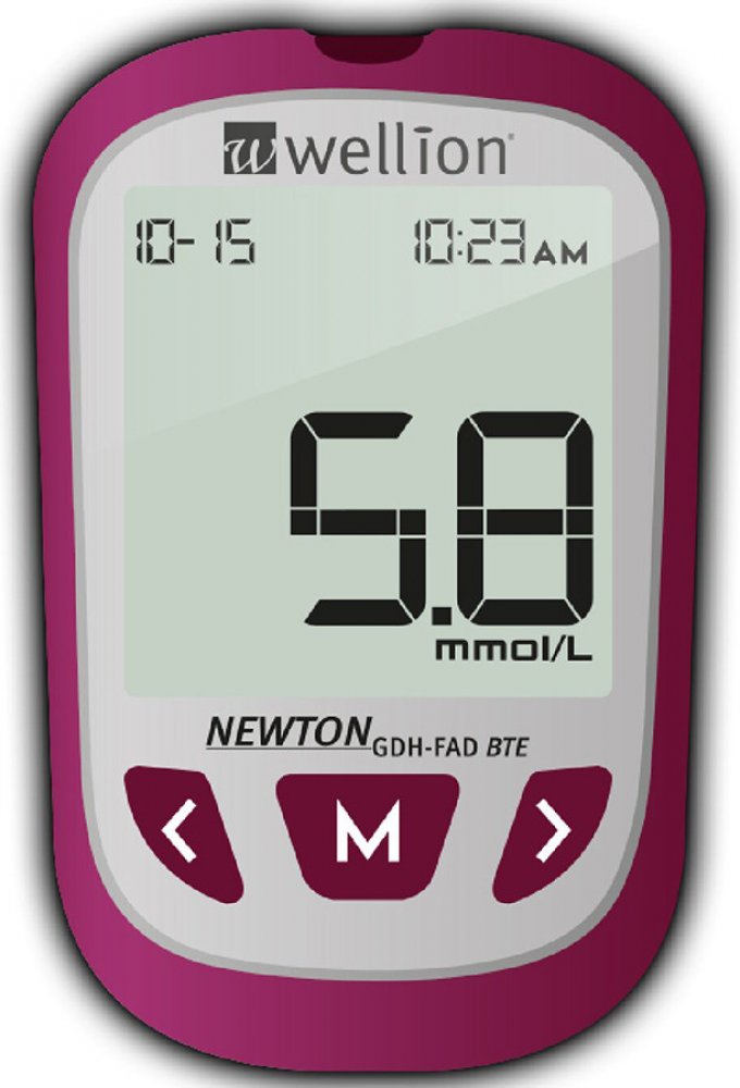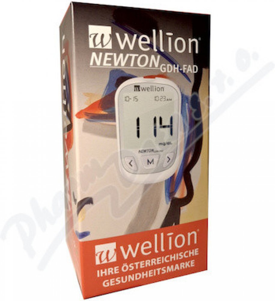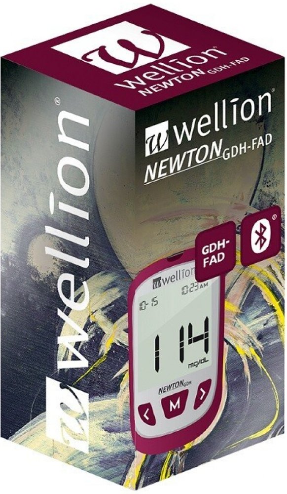 Glukometr Wellion NEWTON GDH-FAD (BTE) s 10 ks testovacích proužků umožňuje získat spolehlivé hodnoty měření z kapilární nebo žilní plné krve. Přístroj je určen jak pro profesionální použití ve zdravotnických zařízeních, tak pro použití pacienty s diabetem při samotestování. Výsledky testů ovšem slouží pouze jen jako pomocné informace, nikoli jako důkazy pro stanovení klinické diagnózy.