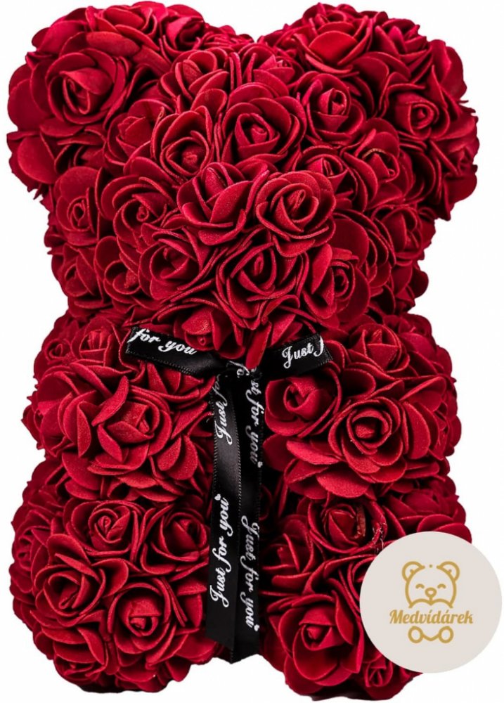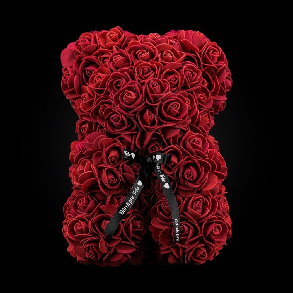 Medvídárek Simple medvídek z růží 25cm - tmavě červený