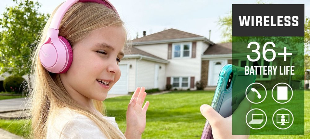 Náhlavní sluchátka pro děti, bezdrátová. Vhodné pro děti od 4 let. Nastavitelná čelenka. Pohodlné náušníky. Omezovač hlasitosti s možností přepínání. Frekvenční rozsah 20-20000. Citlivost 85 dB při omezení hlasitosti. Impedance 32 OHM.