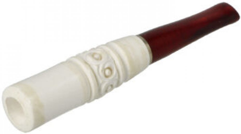 Krátká cigaretová špička Meerschaum bez filtru. Špičky na cigaretu Meerschaum od předního tureckého výrobce produkující nejen cigaretové špičky, ale především kvalitní dýmky z mořské pěny (dýmky Meerschaum). Ručně vyrobená špička z tureckého Meerschaumu je vybavená barevným lesklým náustkem z akrylátu. Hladký lesklý povrch v přírodním odstínu je bohatě zdobený řezaným motivem. Meerschaum je organi...