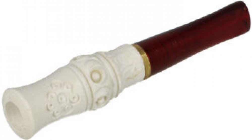 Krátká cigaretová špička Meerschaum bez filtru. Špičky na cigaretu Meerschaum od předního tureckého výrobce produkující nejen cigaretové špičky, ale především kvalitní dýmky z mořské pěny (dýmky Meerschaum). Ručně vyrobená špička z tureckého Meerschaumu je vybavená lesklým náustkem z akrylátu. Hladký lesklý povrch v přírodním odstínu je bohatě zdobený řezaným motivem. Meerschaum je organický neros...