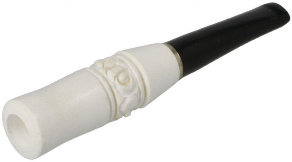 Krátká cigaretová špička Meerschaum bez filtru. Špičky na cigaretu Meerschaum od předního tureckého výrobce produkující nejen cigaretové špičky, ale především kvalitní dýmky z mořské pěny (dýmky Meerschaum). Ručně vyrobená špička z tureckého Meerschaumu je vybavená lesklým náustkem z akrylátu. Hladký lesklý povrch v přírodním odstínu je bohatě zdobený řezaným motivem. Meerschaum je organický neros...