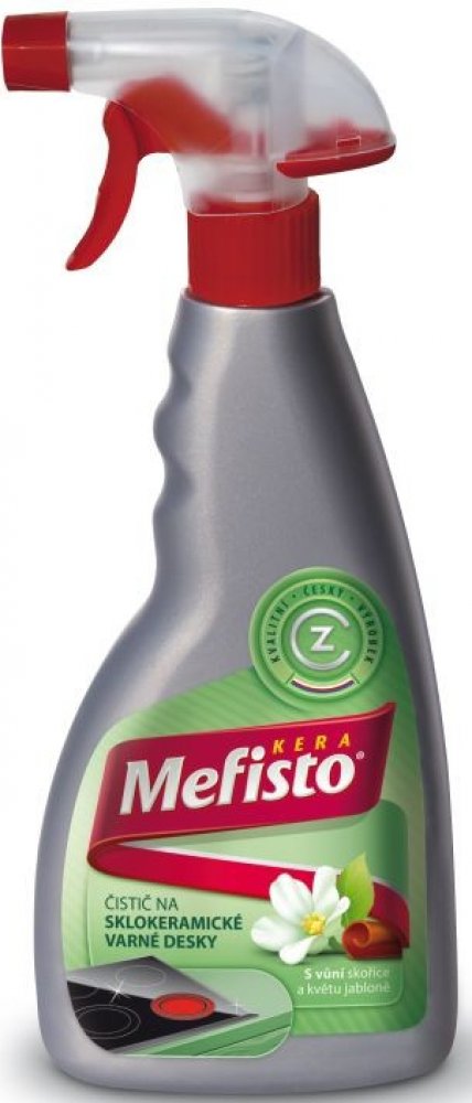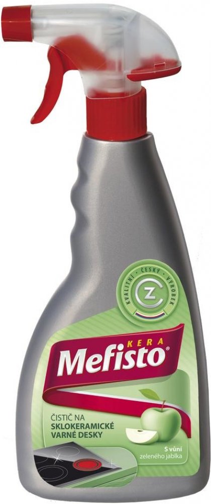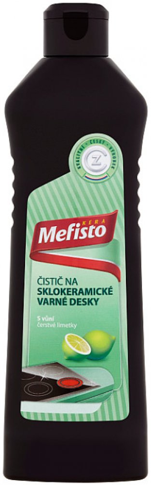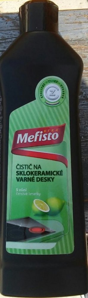 Před vlastním čištěním odstraňte připečené nečistoty kovovou škrabkou doporučenou výrobcem. Vyčistěte celý povrch keramické desky (i mimo varné zóny) ve dvou na sebe kolmých směrech. Na povrch keramické desky naneste Kera Mefisto a měkkým hadříkem celý povrch keramické desky mírným tlakem vyleštěte. Čistění provádějte nejméně jednou týdně, i když na povrchu keramické desky nejsou viditelné nečistoty. Zabráníte tím usazování tenkých vrstev nečistot, které za čas vytvoří těžce odstranitelnou vrstvu, na jejíž vyčištění je zapotřebí nepoměrně větší úsilí a čas. Při znečištění povrchu vařeným pokrmem, zejména obsahujícím cukr, nebo přímo cukrem, použijte ihned (za horka) škrabku a po vychladnutí desku dočistěte Kera Mefistem.
