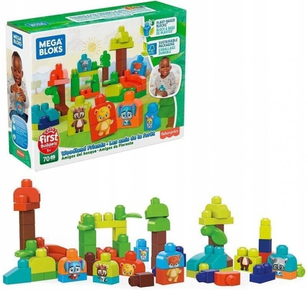 Spojujte a stavějte roztomilá lesní zvířátka s ekologicky šetrnými kostkami! Přišel čas na šetrnější zábavu s těmito 70 velkými stavebními kostkami vyrobenými ze 100% rostlinných materiálů. Kostky jsou perfektně přizpůsobené dětským ručičkám a umožňují z těchto barevných kostkek s motivy zvířátek stavět nepřeberné množství lesních dobrodružství. Spojte 2 díly a vytvořte roztomilá zvířátka jako například jelena, medvěda, ježka a další. Vaši malí stavitelé si mohou rozvinout svou kreativitu a pomoci ochránit planetu s těmito ekologicky šetrnými kostkami.