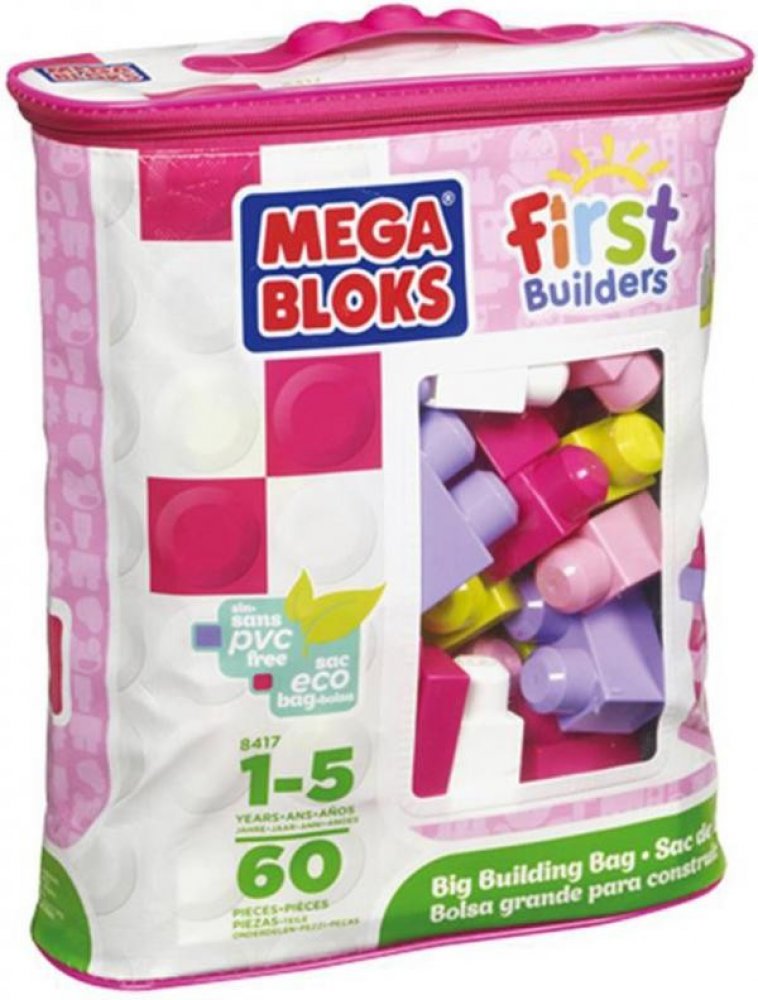 Mega Bloks Kostky v plastovém pytli růžová 60 ks