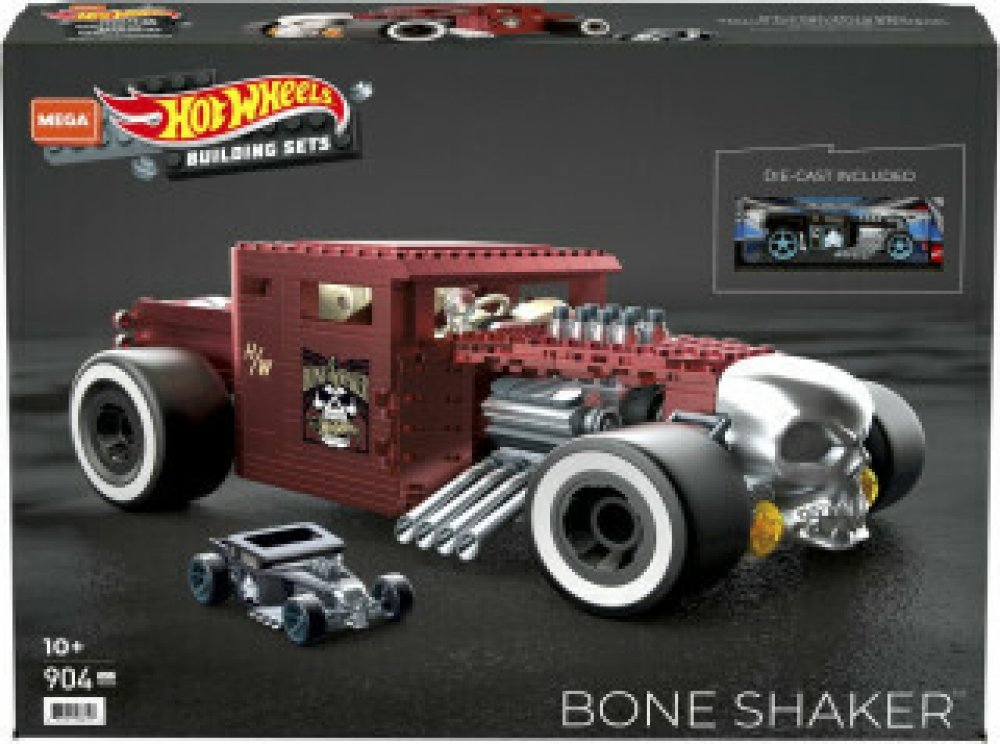 Stavebnice MEGA Hot Wheels - Bone Shaker Stavebnice Hot Wheels Bone Shaker™ – sběratelská ediceLegendární Bone Shaker™ přichází ve velkorozměrném provedení jako sběratelský model, který nesmí chybět ve vitríně žádného fanouška Hot Wheels. Autentický design a prémiové detaily z něj dělají opravdovou trofej, určenou k vystavení i obdivování.Proč si ho zamilujete