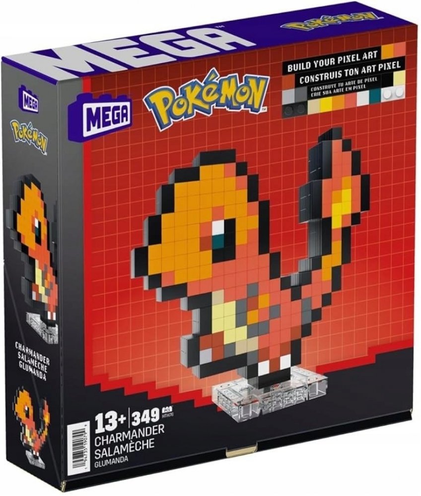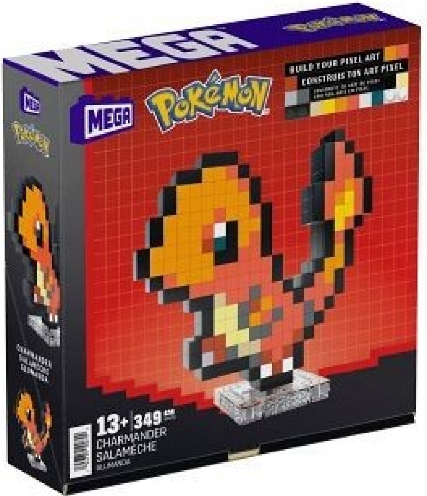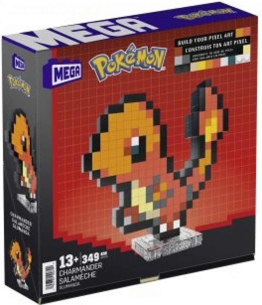 Postavte si svůj vlastní svět plný Pokémonů. Se stavebnicí Pokémon Mega - Charmander Pixel Art to bude hračka! Stavebnice obsahuje 349 kousků, ze kterých metodou Pixel Art sestavíte figurku Charmandera. Díky podstavci si ho můžete vystavit a stane se tak čestným členem vaší sbírky.
