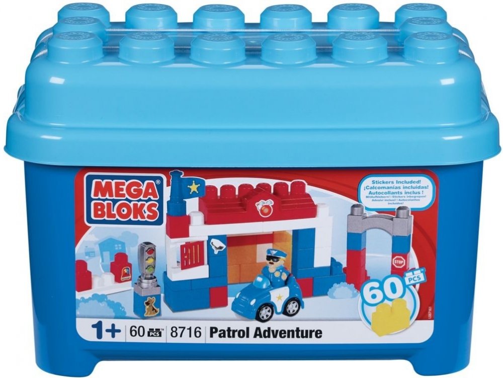 Mega - Stavebnice Policejní stanice v plastovém kyblíku, 60 dílů