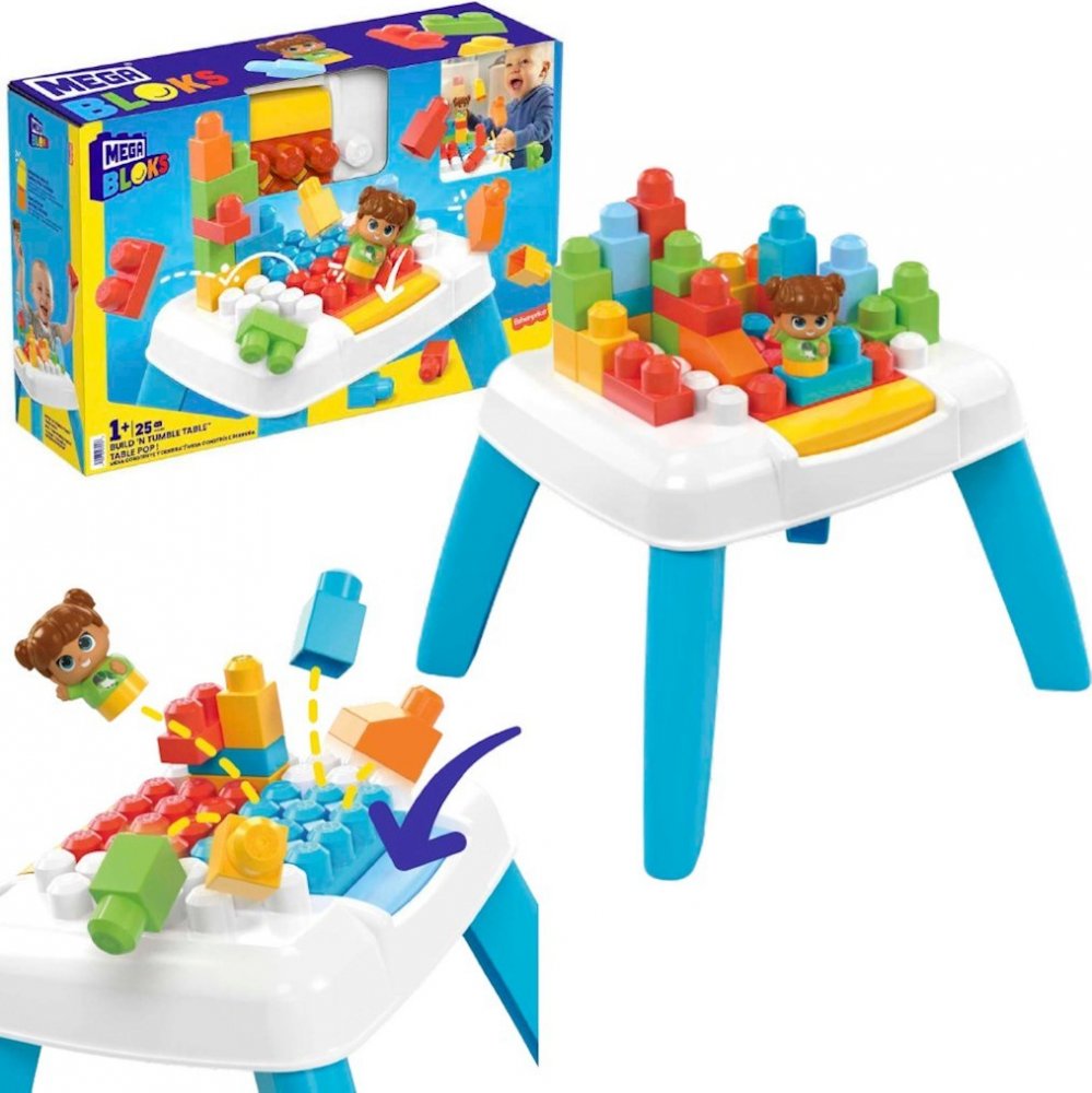 Stoleček postav a rozházej kostky od Mega Bloks nabízí malým stavitelům nový způsob hry.
