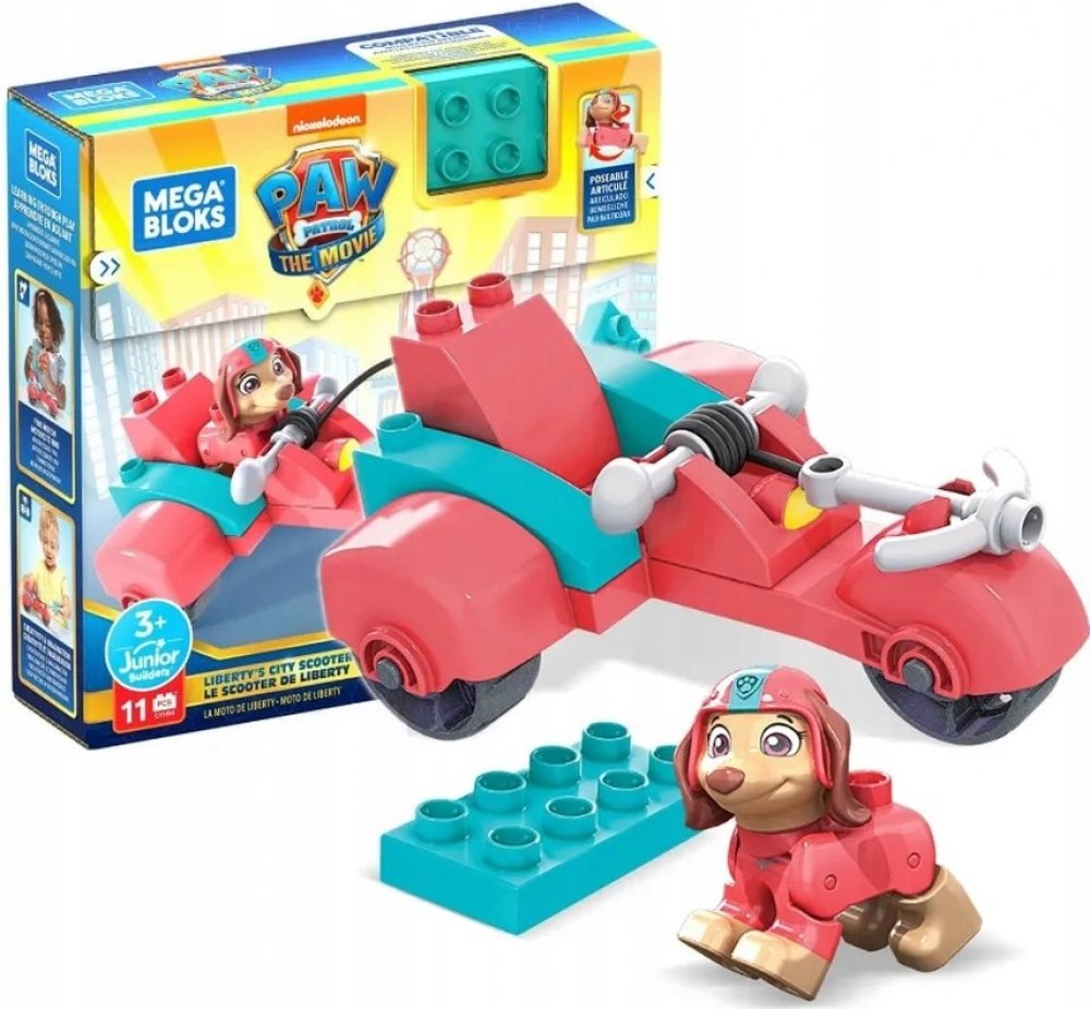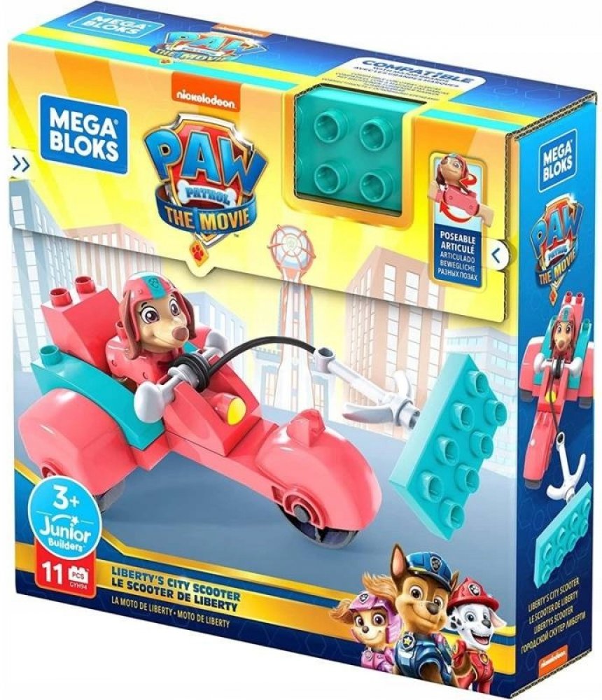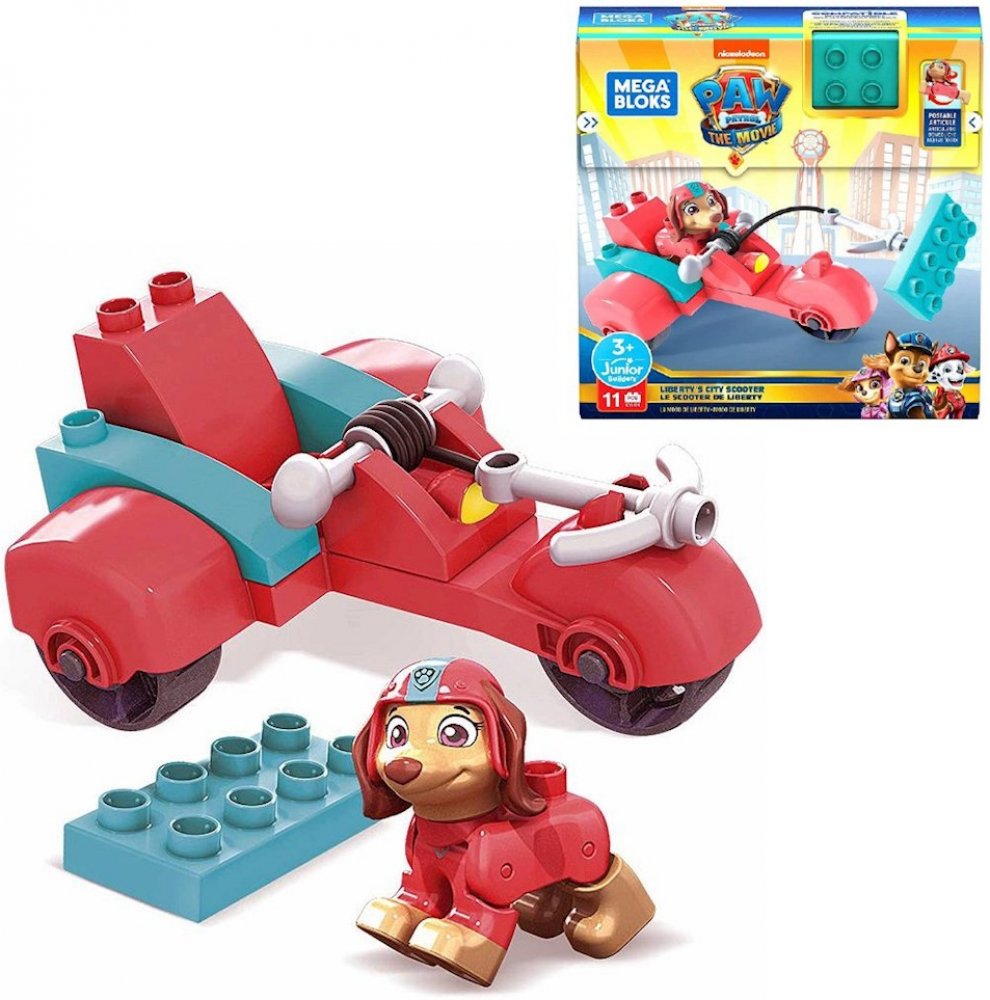 Sada kostek Mega Bloks ze série Paw Patrol - Městská koloběžka Liberty - je jednoduchá stavebnice pro malé fanoušky animovaného seriálu o hrdinských psech.