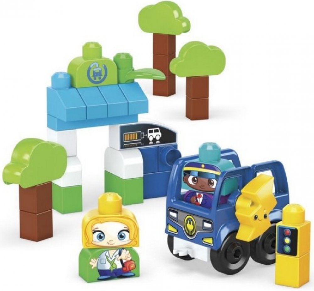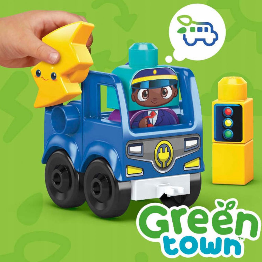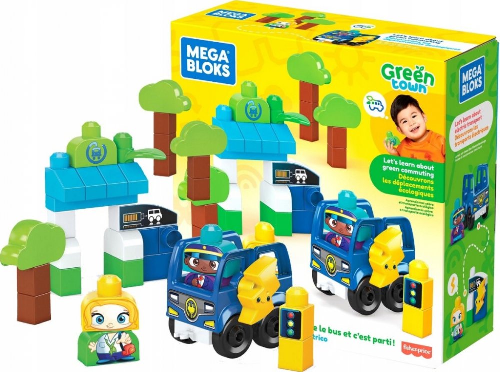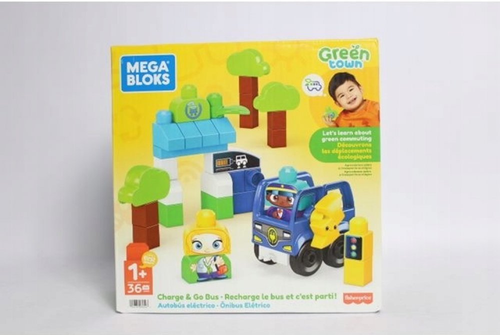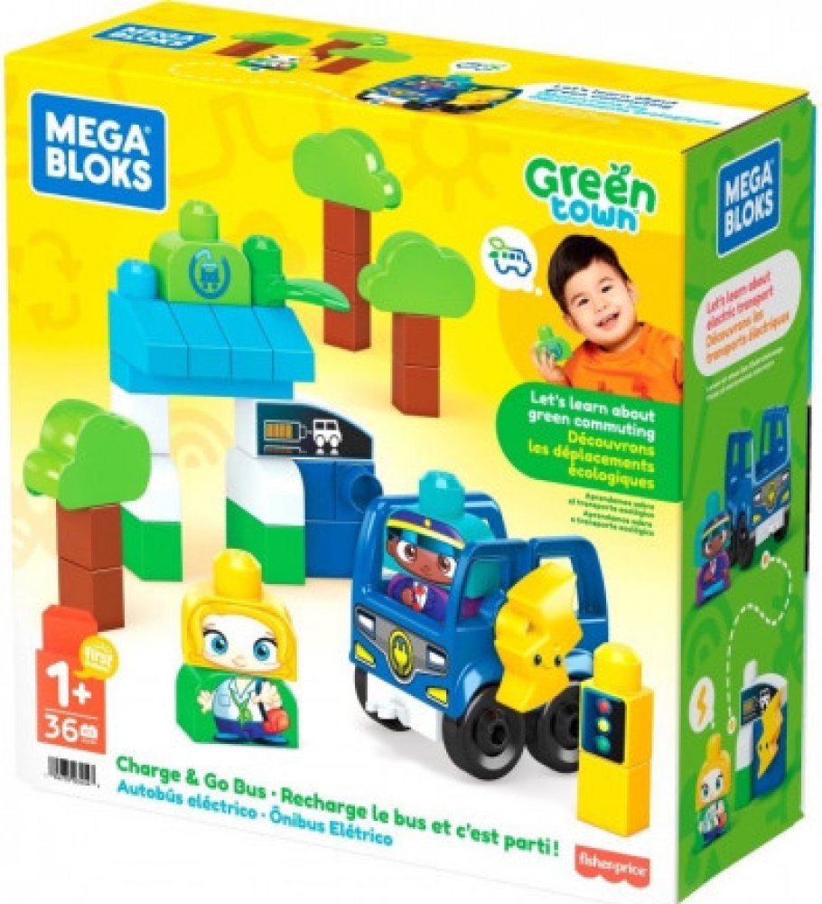 Mega Bloks Zelené město autobus nabij a jeď si Vaše dítě zamiluje. Tato stavebnice obsahuje 35 velkých stavebních kostek včetně speciálních dílků a sestavitelného elektrického autobusu s 1 pojízdným podvozkem vyrobené z plastů z udržitelných zdrojů. Batolata si mohou postavit 2 postavičky strom autobus a autobusovou zastávku s nabíjecí stanicí. Mohou vysadit cestující a zastavit aby autobus nabila...