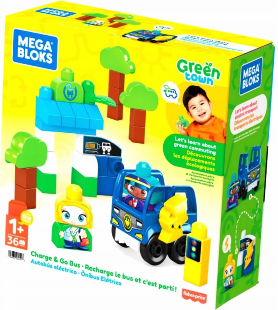 Mega Bloks Zelené město autobus nabij a jeď si Vaše dítě zamiluje. Tato stavebnice obsahuje 35 velkých stavebních kostek včetně speciálních dílků a sestavitelného elektrického autobusu s 1 pojízdným podvozkem vyrobené z plastů z udržitelných zdrojů. Batolata si mohou postavit 2 postavičky strom autobus a autobusovou zastávku s nabíjecí stanicí. Mohou vysadit cestující a zastavit aby autobus nabila než vyrazí na další trasu. Tato stavebnice je navržena speciálně pro malé ručičky a podporuje malé stavitele k ekologickému chování jako je ekologické ježdění a elektrická doprava. Ideální pro děti od 1 roku.