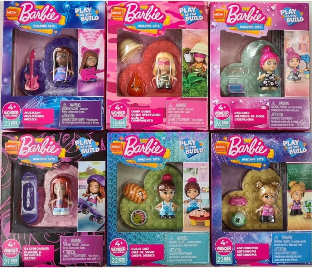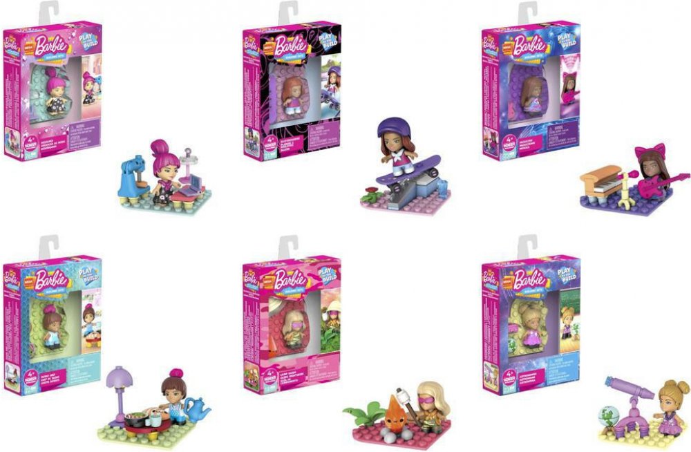 Vybrat si můžete mezi 6 mikropanenkami Barbie™: astronomkou, návrhářkou, skateboardistkou, hudebnicí, kuchařkou ze suši restaurace nebo táborovou vedoucí.