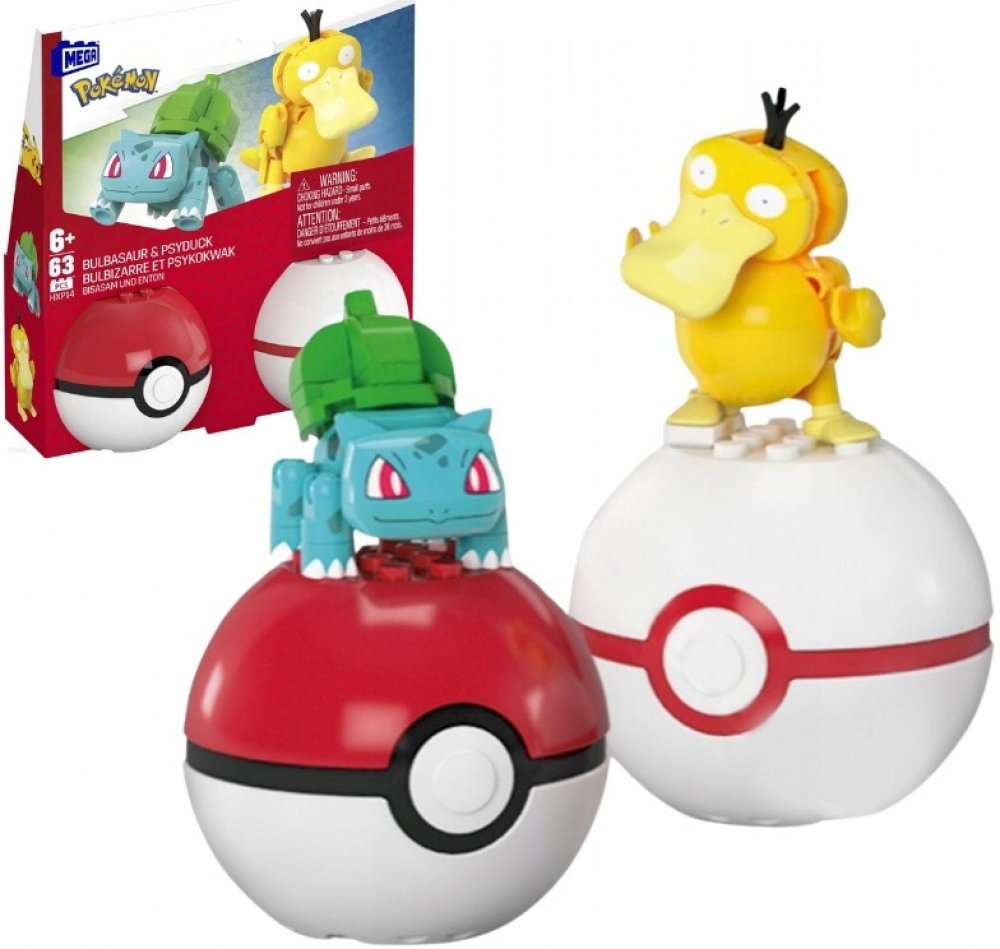 Postavte si svůj vlastní svět plný Pokémonů. Se stavebnicí Pokémon Mega - Bulbasaur a Psyduck s Poké Bally. Stavebnice obsahuje 63 kousků, ze kterých si pfigurky a Pokébally postavíte.