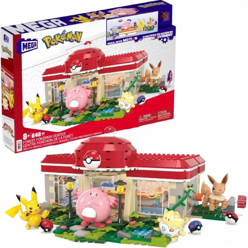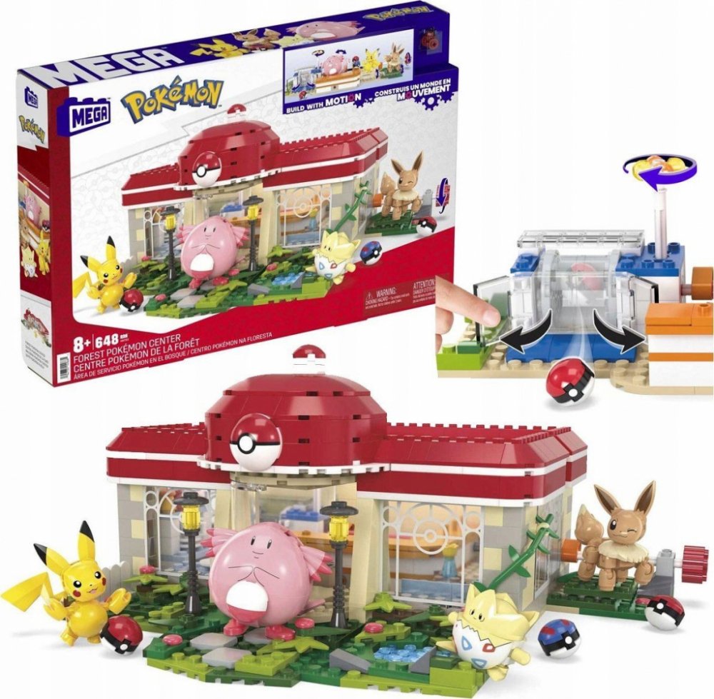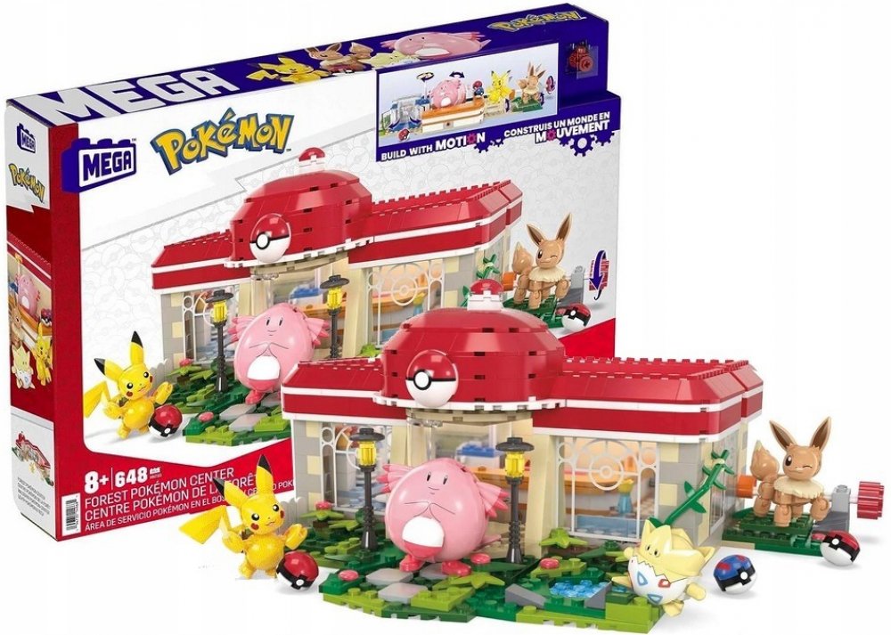 648dílná stavebnice Pokémon Center obsahující inovativní Motion Brick pro vestavěný pohyb