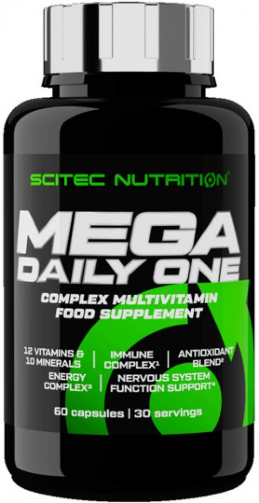 Mega Daily One je naší rozvinutou multivitaminovou a minerální formulí, obsahující 25 účinných látek. Obsahuje vysokou dávku vitamínového B-komplexu a vitamínu C, také životu nezbytné minerální látky, mezi nimi hořčík, selen a zinek.