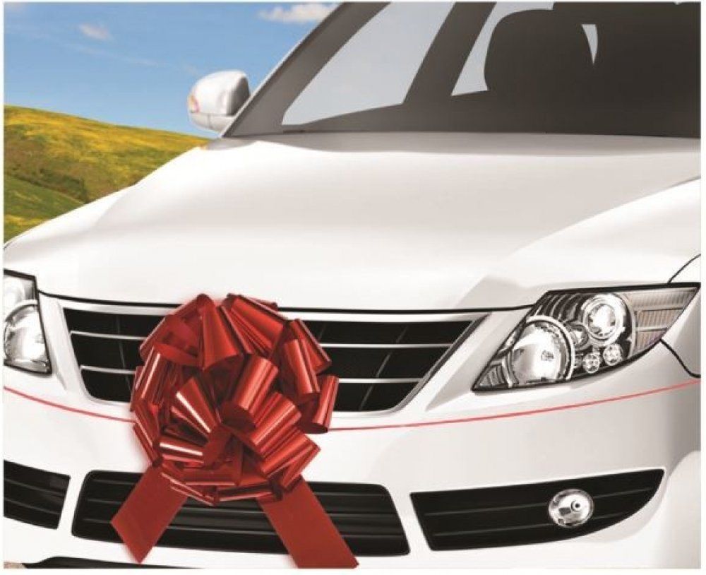 Téměř půlmetrová červená mašle je luxusní dekorace na nové auto, dům, klavír, kolo nebo jakýkoliv mega dárek.