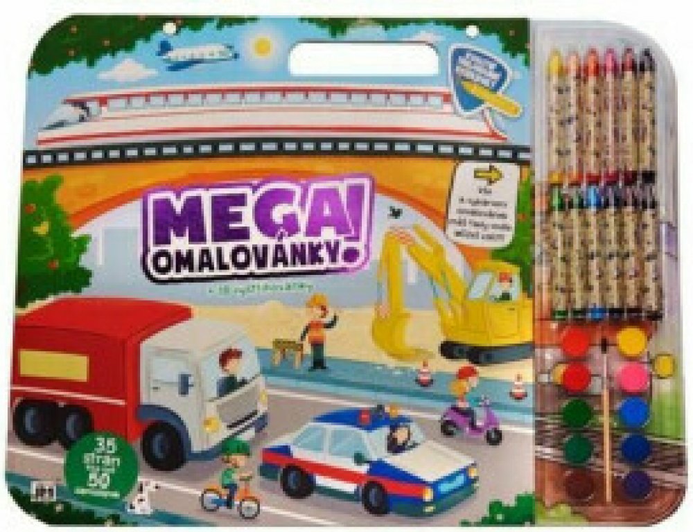 Mega omalovánky - Doprava Set obsahuje 30 obrázků k vybarvení, 5 listů k malování, 12 trojhranných voskovek s potiskem, 10 vodových barev se štětečkem, postavičky k vystřihnutí a více než 50 samolepek. z kategorie Knihy | Literatura pro děti a mládež | Pro nejmenší | Omalovánky | Pro kluky od Jiri Models naleznete ne e-shopu KnihyDobrovsky.cz!