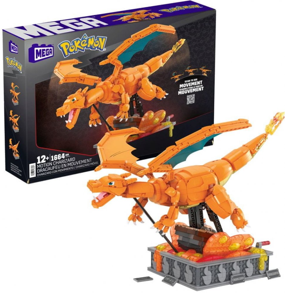 Horko stoupá, Charizard chystá ohnivou podívanou! Tohle je epická stavebnice: po sestavení stačí otočit klikou a křídla se rozmáchnou jako rocková hvězda na pódiu, zatímco se kolem něj valí žhavá láva.