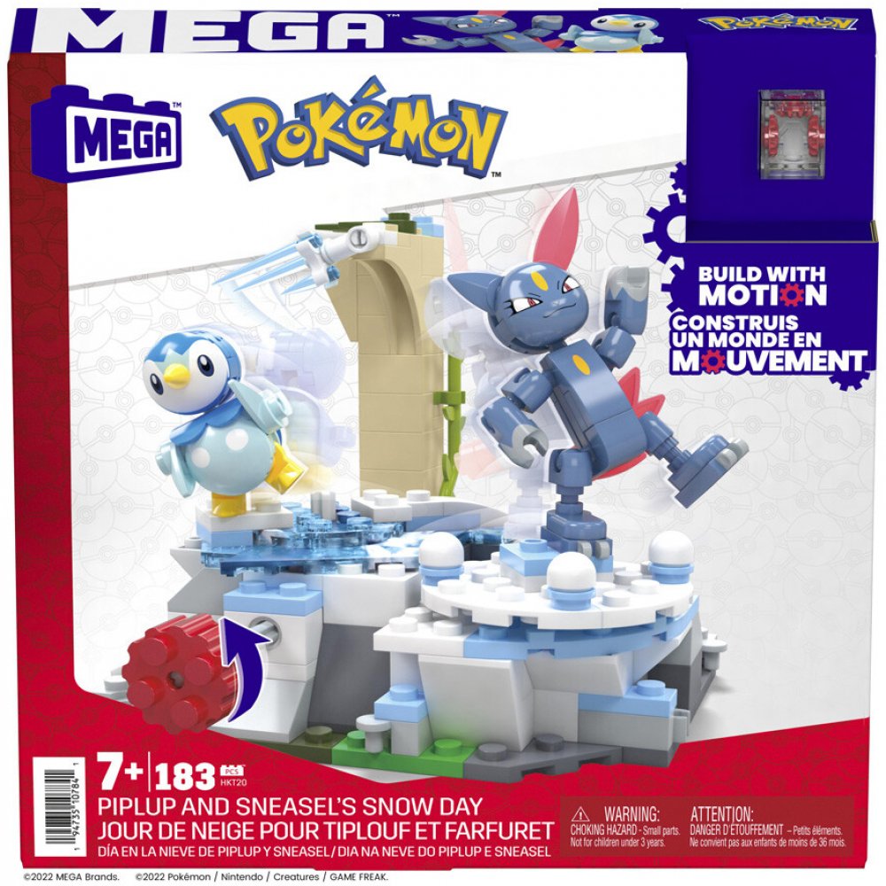 Piplup a Sneasel si v této stavebnici s inovativní funkcí pohybu užijí skvělé chvíle na "sněhu". Postav zasněžené prostředí, pak otoč klikou a sleduj, jak Piplup a Sneasel kloužou zimní říší divů. Stavebnici lze kombinovat s dalšími z řady Adventure Builder a vytvořit tak rozsáhlý dynamický svět Pokémonů. Prodává se samostatně. Stavebnice se 183 dílky a funkcí pohybu: otočením kliky aktivujete pohyb figurek. Sada obsahuje figurky Piplupa a Sneasela a zimní prostředí ke stavění. Sady Adventure Builder se spojují dohromady, což umožňuje vytvořit rozsáhlý dynamický svět Pokémonů. Hračka stimuluje kreativitu a učí řešit problémy, ideální pro stavitele starší 7 let. Oficiálně licencováno společností Pokémon Company International.