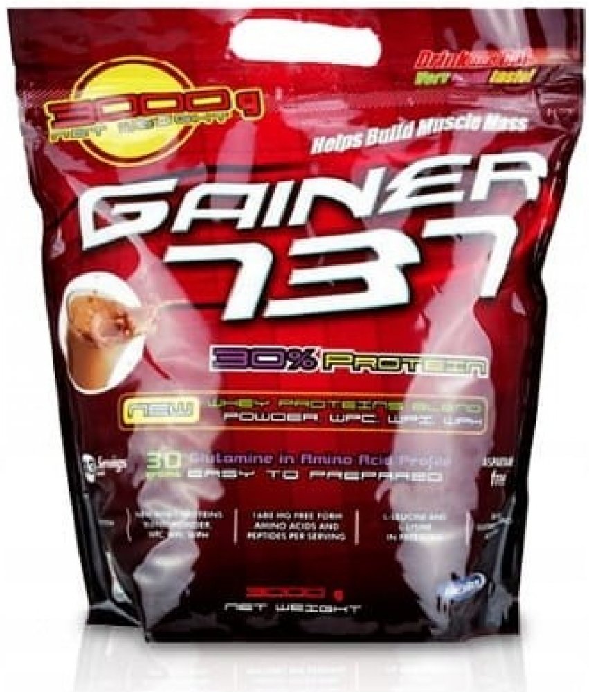 Gainer 737 získal status nejprodávanějšího Gaineru na trhu, a to díky jeho užitečným vlastnostem. Jeho základním rysem je výrazná chuť a rozmanitost příchutí, avšak jeho největším plusem je procentuální zastoupení bílkovin na jednu dávku. Přibližně v 100 g výroku najdete až 30 % bílkovin, které jsou získány ze syrovátky WPI, WPC a WPH, izolované bílkoviny z pše...