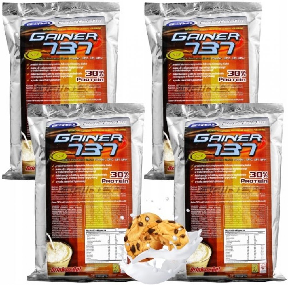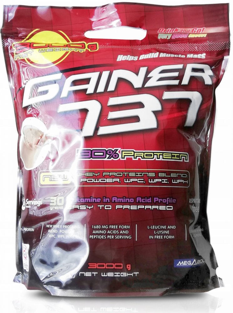 Gainer 737 je nejznámějším a nejpopulárnějším produktem od společnosti Megabol. Nemá konkurenci v poměru chuť - kvalita - cena. Je výborným produktem pro začátečníky, kteří mají problém nabrat tělesnou hmotnost za nízkou a přijatelnou cenu a silové sportovce v objemové přípravě. Jeho chuť je velmi výrazná a má několik zajímavých příchutí, z nichž si určitě vybereš svou oblíbenou. Výborně se rozpouští ve vodě i mléku. Nejúčinnější je po silovém tréninku a před spaním.