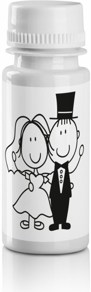 Svatební bublifuk 60 ml - nevěsta a ženichSvatební bublifuk nevěsta a ženich. Bílá lahvička s bílým víčkem a veselým obrázkem šťastných novomanželů. Dokonalá dekorace na každou veselou svatbu!Líbí se Ti tato grafika?Napiš nám a my bublifuky vyrobíme přímo pro Tebe. Minimální objednávka je 50 ks.Bublifuk nedělá skvrny na oblečení! Je bezpečný, nezávadný a splňuje evropskou normu bezpečnosti hraček....
