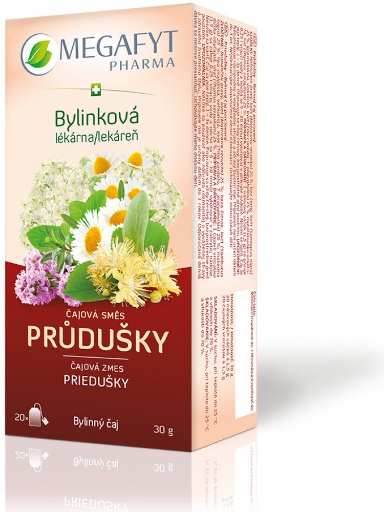Čajová směs průdušky je bylinný čaj s lípou, heřmánkem, černým bezem a mateřídouškou. Jedná se o doplněk stravy