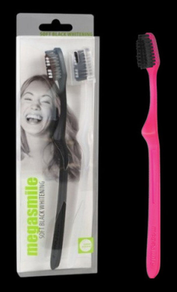 Zubní kartáček Megasmile Soft Black Whitening je vhodný pro osoby trpící na citlivé zuby. Extrémně jemné štětinky zubního kartáčku odstraní plak z Vašich zubů jemně a obsažené částečky aktivního uhlí pomohou z odstraněním nechtěného pigmentu zubů.