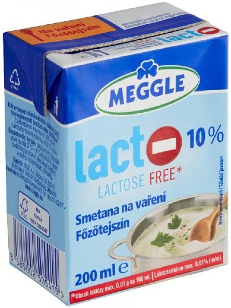 -- Bezlaktózová smetana na vaření 200 ml se skvěle hodí pro přípravu teplých pokrmů. Přidáním do svých oblíbených omáček či polévek vykouzlíte delikátní jídla, která potěší vaše chuťové buňky a současně nezatíží trávení. Lahodná bezlaktózová smetana na vaření Meggle je plnohodnotnou náhradou za běžnou smetanu. Bezlaktózové produkty MEGGLE jsou vhodné pro všechny, kteří trpí sníženou tolerancí laktózy. Mírně nasládlá chuť a karamelová barva neznamenají zhoršenou kvalitu produktu.