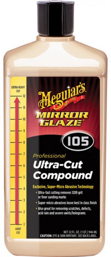 M105 Meguiar's Ultra-Cut Compound je prvním, korekčním krokem v profesionálním dvoukrokovém systému Meguiar's Mirror Glaze. S touto pastou, kterou můžete aplikovat jak ručně, tak strojně pomocí orbitální i rotační leštičky, odstraníte defekty laku (škrábance, skvrny, oxidaci, naleptání) i výbrusy až do zrnitosti 1200.