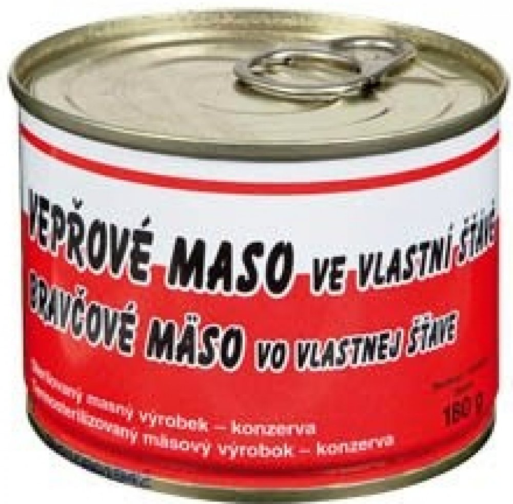 Vepřové maso ve vlastní šťávě 180g. Sterilovaný masný výrobek - konzerva