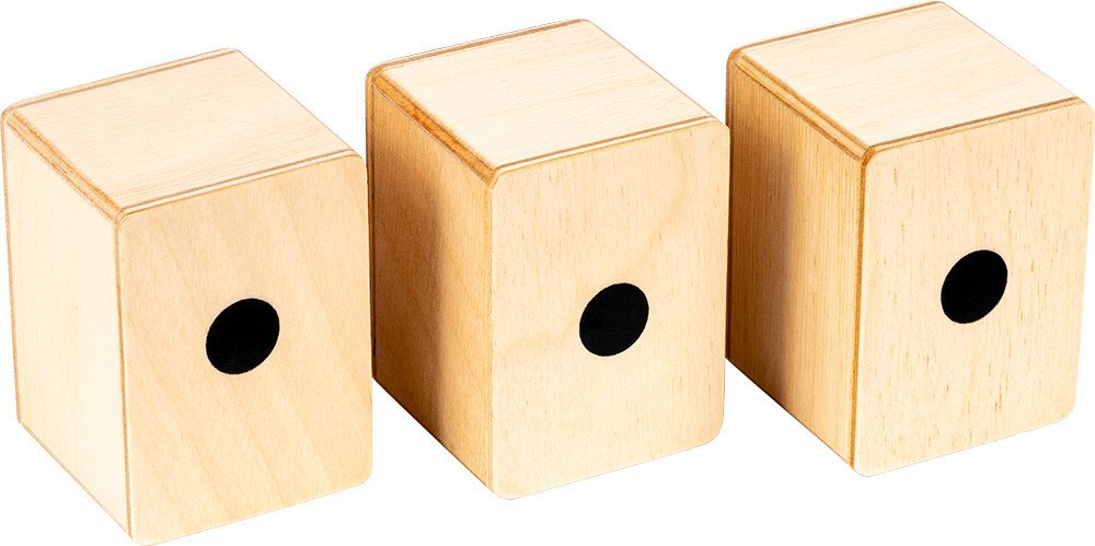 Carry a cajon in the palm of your hand! These small wooden shakers look like our miniature cajons and deliver clear, cutting shaker sounds. This pack of three offers different finishes and sounds.,Content: 3 Pieces×Size: 2" W x 2 3/4" H x 2" D×Materials: Resonating Body: Baltic Birch (Betula pendula); Frontplates: Exotic Zebrano, Bubinga Burl, Baltic Birch (Betula pendula)×Features: Three unique t...