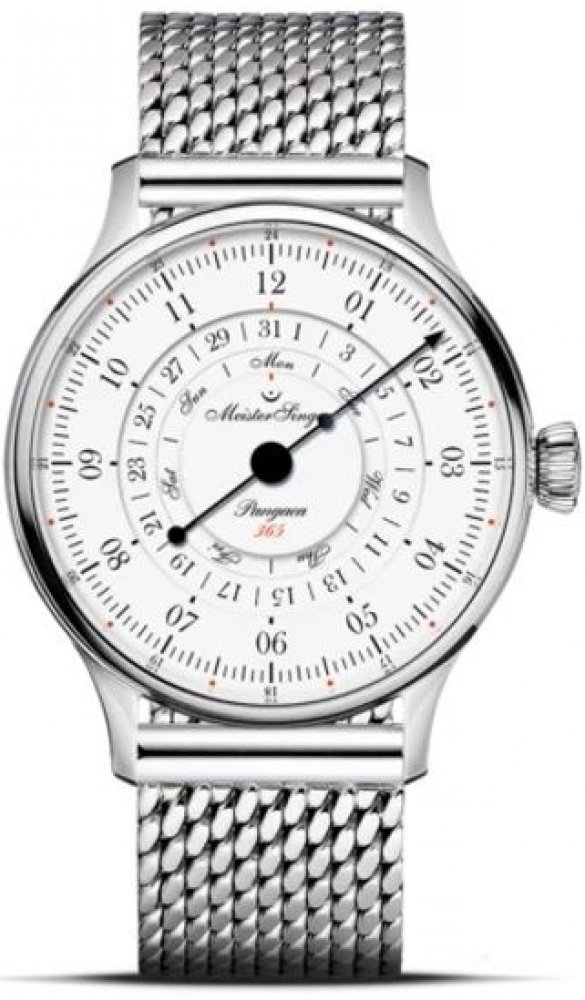 Hodinky MeisterSinger Pangaea Day Date 365 PDD365901 spadají do řady Classic Plus a nabízí netradiční, ale o to zajímavější zobrazení času pomocí jedné jediné ručky. Hlavním znakem tohoto modelu je ukazatel dne a data, zobrazený pomocí disků ve středu číselníku. Příznivci kvalitní hodinařiny a netradičních řešení si tedy rozhodně přijdou na své.