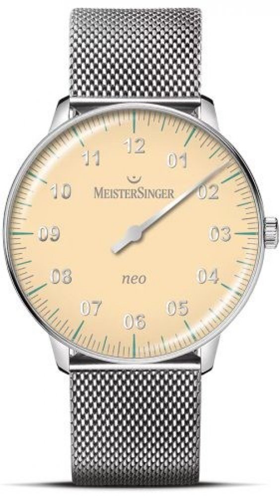 Kolekce Neo je již řadu let základem nabídky značky MeisterSinger. Její design připomíná elegantní společenské hodinky z 50. a 60. let, přičemž úzký okraj pouzdra staví ciferník do středu pozornosti. Mírně zakřivené sklo ještě více umocňuje retro kouzlo.