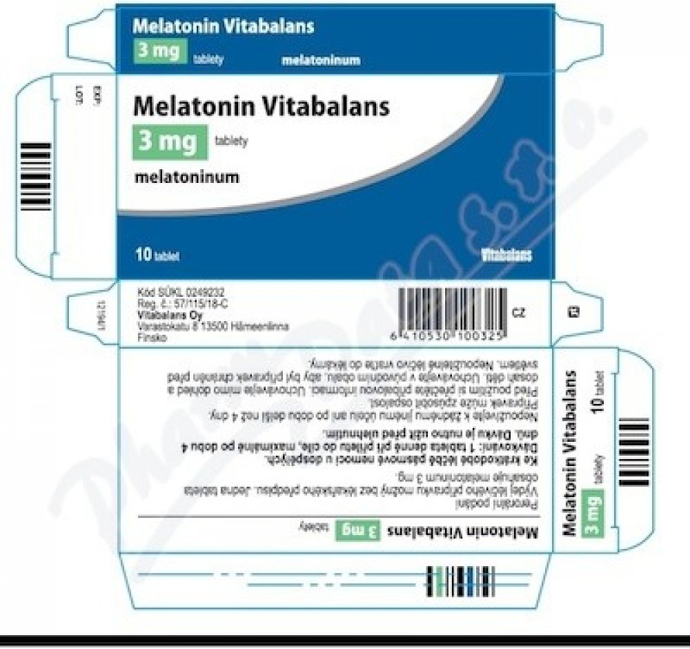 - Léčivou látkou je melatoninum. Léčivá látka přípravku Melatonin Vitabalans, melatonin, patří do skupiny přirozených hormonů vytvářených v těle. Melatonin pomáhá regulovat biologický rytmus dne a noci. Přípravek Melatonin Vitabalans se používá ke krátkodobé léčbě pásmové nemoci u dospělých.