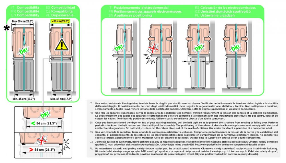 Vhodný pro všechny typy praček a sušiček s hloubkou 45-70 cm