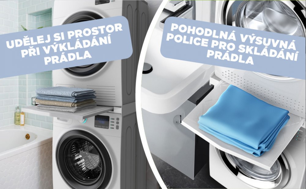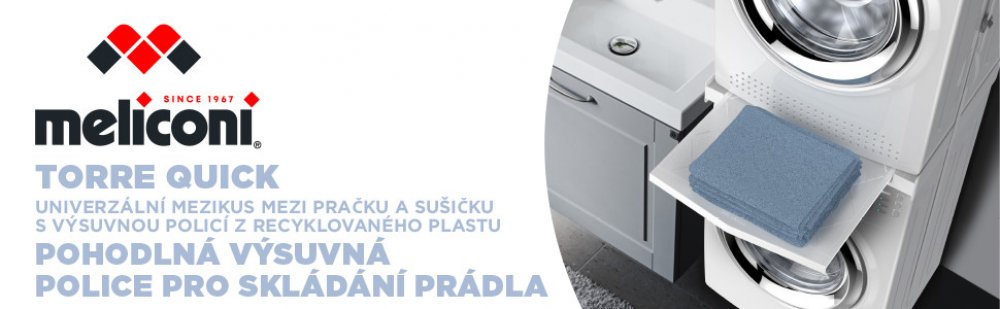 - máte malou koupelnu nebo nedostatek prostoru pro umístění pračky a sušičky? Nevzdávejte to a pořiďte si univerzální mezikus Meliconi, který se vkládá mezi pračku a sušičku díky čemuž spotřebiče mohou být umístěny přímo na sobě, čímž ušetříte spoustu místa