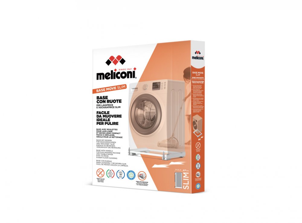 Vlastnosti:- BASE Move SLIM- základna s kolečky pro pračku a sušičku- vhodná pro vestavby, díky snížené výšce produktu - umožňuje snadno přemisťovat spotřebiče a mít tak přístup k zadní části spotřebiče pro čištění podlah nebo údržbu v naprostém pohodlí- zaručuje stabilitu i na nerovných podlahách a díky brzdám, které fixují spotřebič, a přemístitelným díky gumovým kolečkům- Base Move Slim je vyrobeno z 30% certifikovaného recyklovaného plastu- univerzální a kompatibilní se všemi pračkami a sušičkami s předním plněním do hloubky 47 cm- maximální podporovaná hmotnost: 250 kg- páčky pro uvolnění brzd umístěné vpředu, snadno ovladatelné, i když je spotřebič vestavěný nebo umístěný v rohu nebo výklenku, se zvednutými pákami lze základnu se spotřebičem posouvat díky 4 odolným kolečkům, při spuštěných pákách se základna stabilně opírá o pryžové antivibrační nožičky a zůstává náležitě brzděna- gumové kolečka absorbují vibrace a snižují hluk (pračky)- předem smontovaný a snadno se instaluje (pokyny…