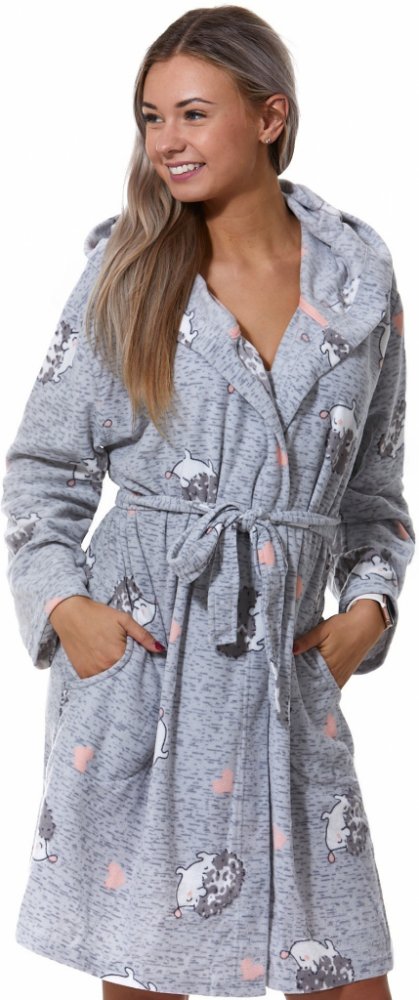 Melírový teploučký župan Ježci a srdíčka na kojení 1Z1274 šedá