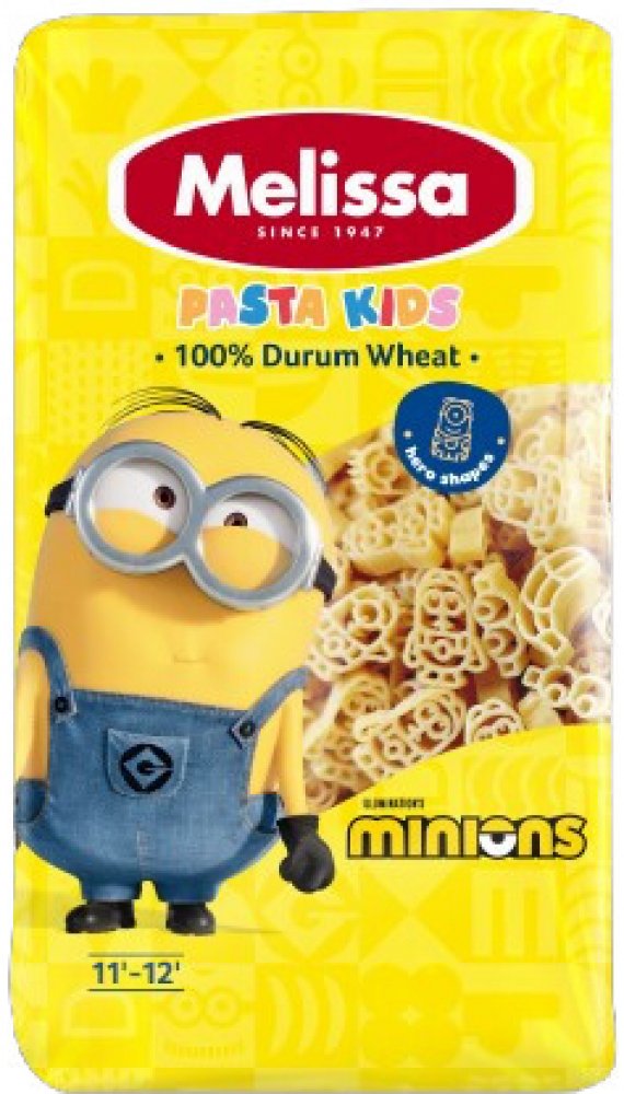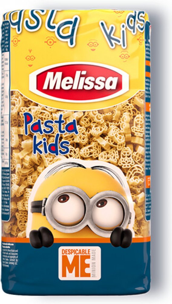 Melissa Dětské těstoviny Mimoni 400 g. Veselé dětské těstoviny z kvalitní semoliny ve tvaru oblíbených postaviček Mimoňů. Perfektní způsob, jak zpestřit dětem jídlo a udělat z něj zábavný zážitek. Ideální do polévek, omáček nebo jen s máslem a sýrem. Skvělé pro zpestření dětského jídelníčku.