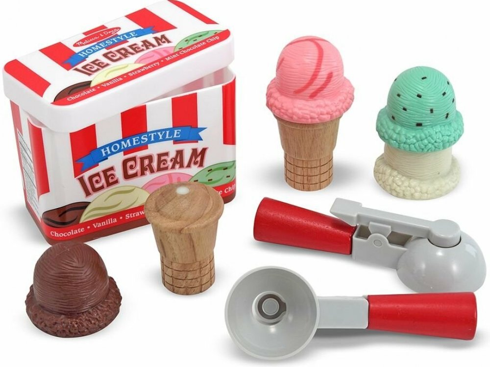 Zmrzlinu miluje každé dítě. Kopečky zmrzliny v na sobě drží pomocí magnetu. Rozvíjí motorické schopnosti dětí. {PRODUCT_NAME}{PRICE}{DESCRIPTION_TITLE}{PRODUCT_DESCRIPTION}{SPECIFICATIONS_TITLE}{COLOR_LABEL}: {COLOR}{MATERIAL_LABEL}: {MATERIÁL}{DIMENSIONS_LABEL}: {DIMENSIONS}{WEIGHT_LABEL}: {WEIGHT}{MANUFACTURER_LABEL}: {MANUFACTURER}{REVIEWS_TITLE}{CUSTOMER_1}: {REVIEW_1} {CUSTOMER_2}: {REVIEW_2} {CUSTOMER_3}: {REVIEW_3} {CTA_TEXT} Mellisa&Doug: Lodziarnia Představujeme vám fantastickou sadu magnetických zmrzlinových pochoutek od Mellisa & Doug, která je perfektní pro malé cukráře a zmrzlinové nadšence! S touto kreativní hračkou můžete podávat studené dobroty jako nikdo jiný. Sada obsahuje magnetickou zmrzlinovou naběračku a čtyři barevné kopečky – vanilkovou, čokoládovou, jahodovou a mátovou. Stačí zmáčknout páčku a kopečky elegantně spadnou na dřevěné kornoutky. Celý set je navržen tak, aby podporoval dětskou fantazii a kreativitu. Díky tomu, že všechny komponenty je možné ukládat do stylového plastového kelímku, je hračka snadno přenosná a uklizená. Je ideální pro hru doma i na cestách. Pro děti starší tří let je to skvělá příležitost trénovat sdílení a rozvíjet dovednosti jako počítání, třídění či poznávání barev. Tento skvělý set podporuje také jemnou motoriku dětí, když se učí správně nabírat a servírovat zmrzlinu. Hrát si na zmrzlinový stánek nebylo nikdy snazší a zábavnější. Umožněte vašim dětem stát se na chvilku těmi, kdo obsluhují ve své vlastní zmrzlinárně a povzbuzujte jejich představivost k vytváření nejrůznějších sladkých kombinací. Magnetická zmrzlinová sada Mellisa & Doug je nejen zábavná, ale také bezpečná – výrobce Spin Master International B.V. dbal na přísné bezpečnostní standardy ve všech fázích výroby. Pokud hledáte dárek, který je zároveň hravou i vzdělávací pomůckou, naše zmrzlinová sada je tím pravým výběrem. Staňte se svědky radosti, kterou může přinést, a užijte si úsměvy vašich nejmenších při každém setkání se světem zmrzlin.