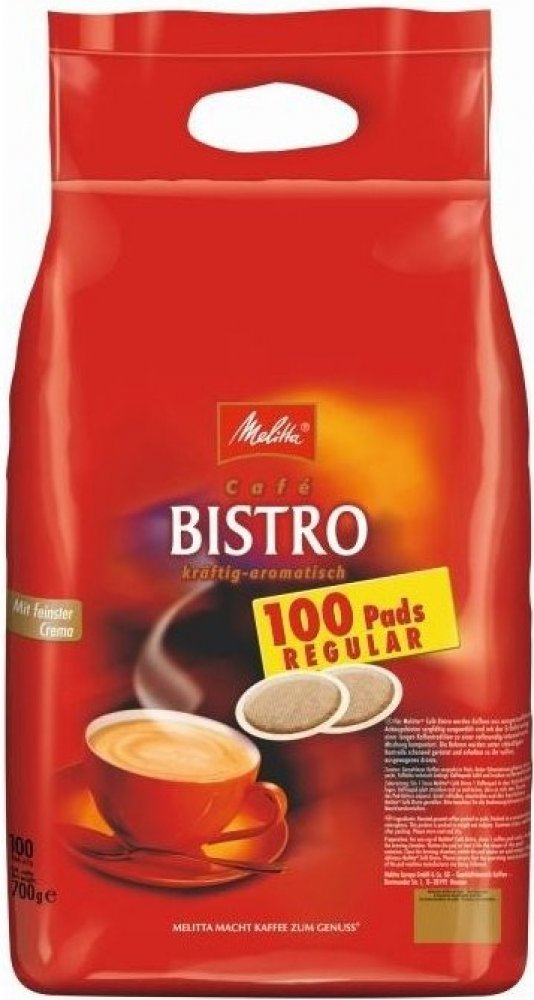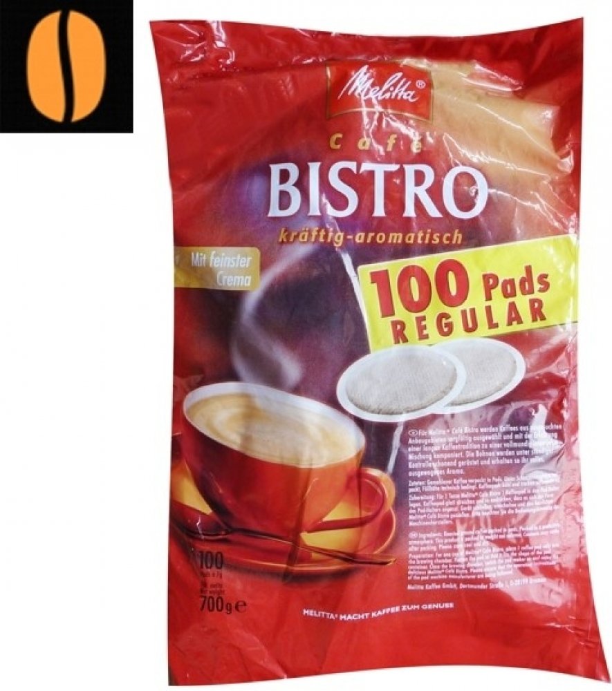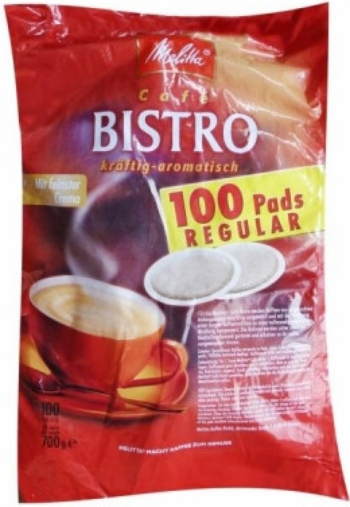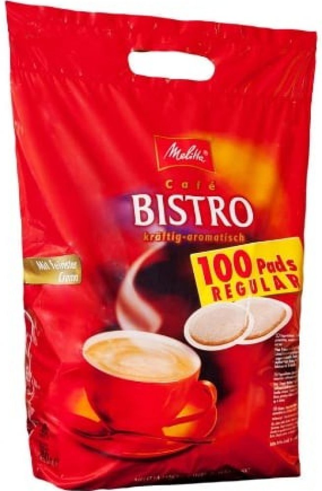 Melitta Bistro Regular pody jsou plněny směsí kávy z pečlivě vybraných a stále kontrolovaných oblastí. Výsledkem je středně silná káva s hustou cremou. Pody jsou baleny samostatně po jednom kuse v ochranné atmosféře.