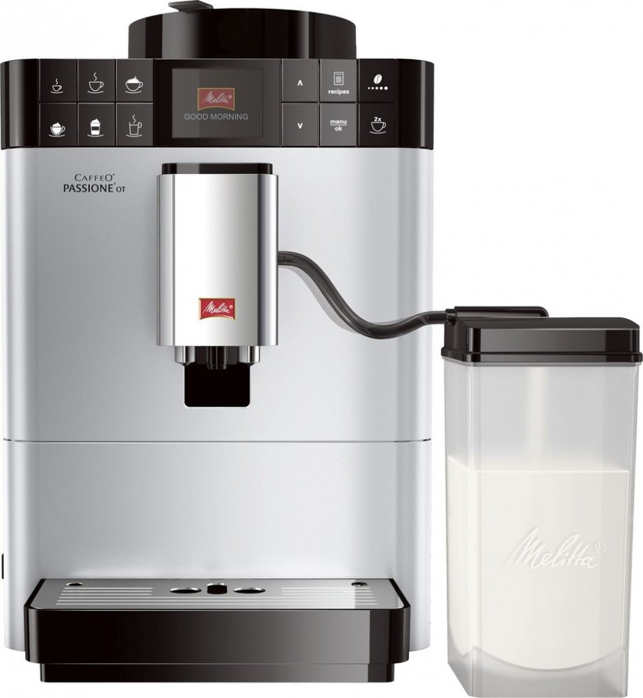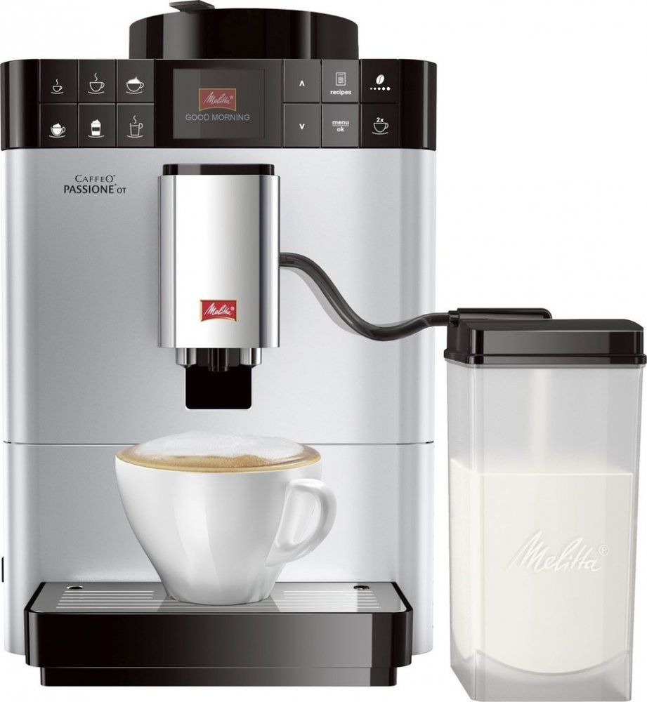 Melitta stříbrná mechanické s integrovanou nádobou na mléko 15 bar 1.2 l 125 g 135 mm barevný TFT displej pro běžné šálky s nádržkou na vodu 1450 W ocelové 5 8.3 kg 39.0 cm 25.3 cm 38 cm se snadnou údržbou pro 1-2 osoby 10 standardní
